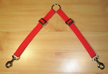 Die Koppel verringert die Probleme mit sich verheddernden Leinen erheblich! Die beiden Seiten sind mittels der Schieber stufenlos in der Länge verstellbar: von 70 - 110 cm. |